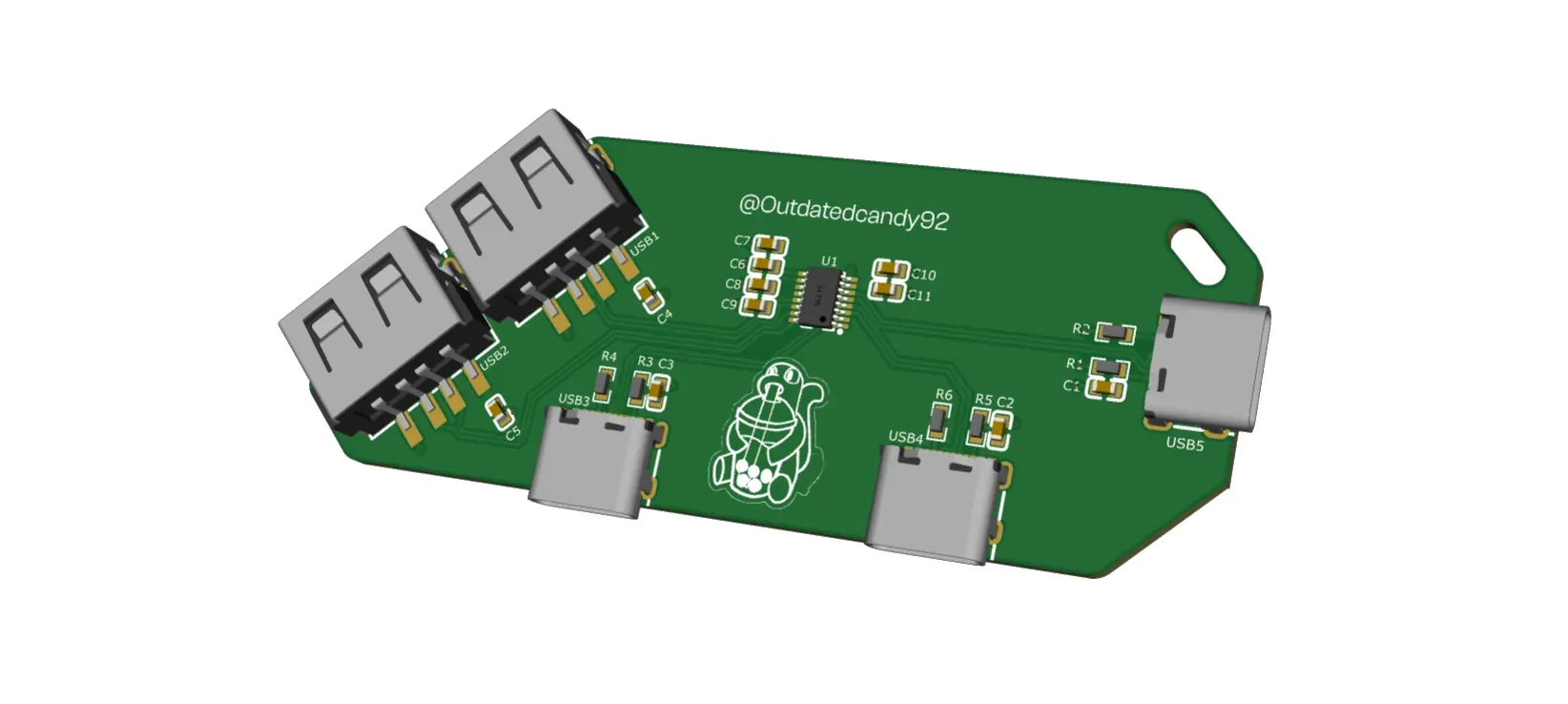 By the end of this guide, you’ll have designed a USB hub that looks something like this:
